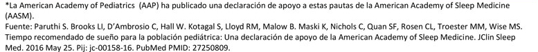 La America Academy of Pediatrics (AAP) apoya las pautas de la AASM y anima a los padres a cerciorarse de que sus niños establezcan buenos hábitos para dormir desde el comienzo.